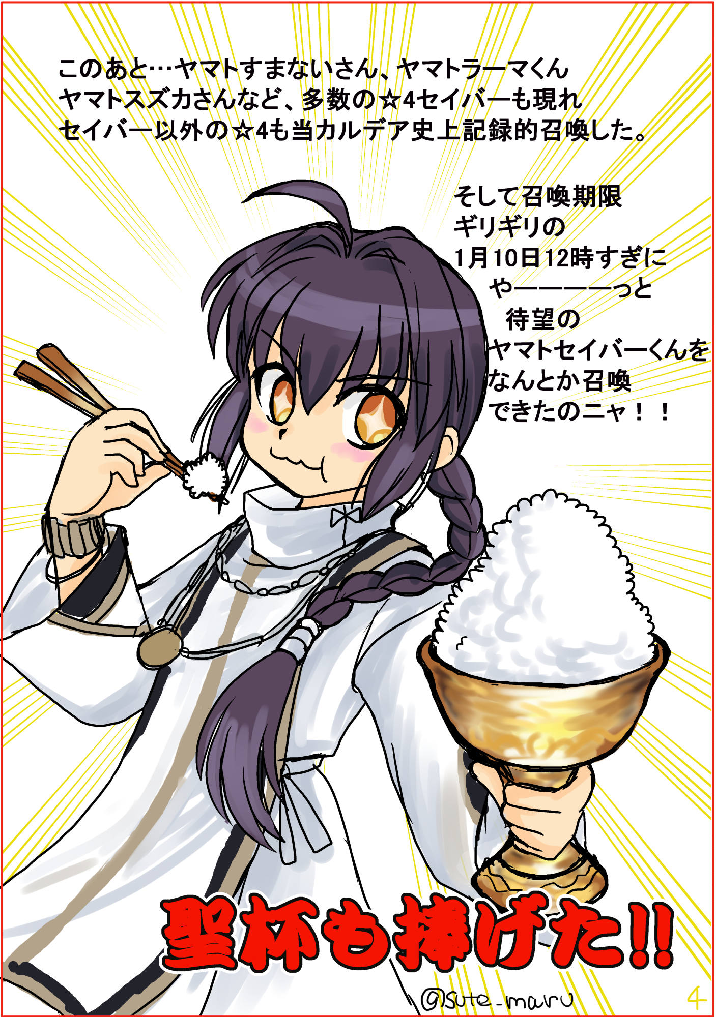 TYPE-MOON好き暦十数年~FGOは2015年からプレイ組。 セイバー(アルトリア)(ヤマトタケル)好き! ひびちか好き!  サークル【ゆったり庵】のFate絵担当。 らくがきと四コマまんがを気まぐれに描く。 ※当ブログ内の画像等の転載・切り抜き・AI学習禁止。
